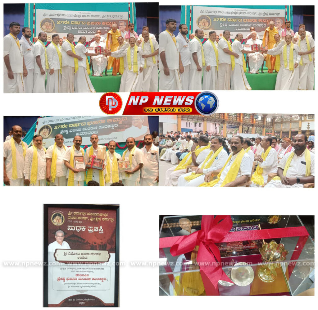 ಶ್ರೀ ಧರ್ಮಸ್ಥಳ ಮಂಜುನಾಥೇಶ್ವರ ಭಜನಾ ಪರಿಷತ್, ಶ್ರೀ ಕ್ಷೇತ್ರ ಧರ್ಮಸ್ಥಳ ಇದರ ವತಿಯಿಂದ ಪ್ರತೀ ತಾಲೂಕಿನ ಒಂದು ಶ್ರೇಷ್ಠ ಭಜನಾ ಮಂಡಳಿಗೆ ನೀಡಲ್ಪಡುವ ‘ಸಾಧಕ ಪ್ರಶಸ್ತಿ’ಯನ್ನು ಭಜನಾ ಕಮ್ಮಟದ ಸಮಾರಂಭದಲ್ಲಿ ಶ್ರೀ ಕ್ಷೇತ್ರ ಧರ್ಮಸ್ಥಳದ ಧರ್ಮಾಧಿಕಾರಿ ಪದ್ಮಶ್ರೀ ಡಾ! ಡಿ.ವೀರೇಂದ್ರ ಹೆಗ್ಗಡೆ ಅವರು ಹೇಮಾವತಿ ವಿ. ಹೆಗ್ಗಡೆ ಅವರೊಂದಿಗೆ ಶ್ರೀ ಕ್ಷೇತ್ರ ಮಾಣಿಲದ ಶ್ರೀ ಶ್ರೀ ಮೋಹನದಾಸ ಸ್ವಾಮೀಜಿ ಅವರ ಉಪಸ್ಥಿತಿಯಲ್ಲಿ ಉಡುಪಿ ತಾಲೂಕಿನ ಶ್ರೀ ವಿಠೋಬ ಭಜನಾ ಮಂಡಳಿ ಅಂಬಲಪಾಡಿ ಇದರ ಪದಾಧಿಕಾರಿಗಳಿಗೆ ಹಸ್ತಾಂತರಿಸಿದರು.