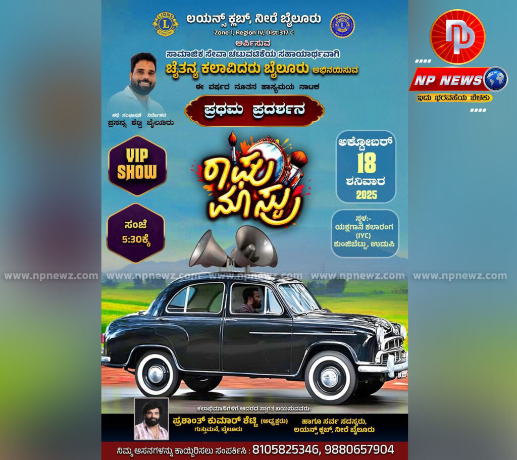 ಉಡುಪಿ: ಸಮಾಜಮುಖಿ ಕಾರ್ಯಗಳಲ್ಲಿ ನಿರತವಾಗಿರುವ ಲಯನ್ಸ್ ಕ್ಲಬ್, ನೀರೆ ಬೈಲೂರು (Zone 1, Region IV, Dist 317 C) ಇವರು ಆಯೋಜಿಸಿರುವ ಸಾಮಾಜಿಕ ಸೇವಾ ಚಟುವಟಿಕೆಯ ಸಹಾಯಾರ್ಥವಾಗಿ, ಚೈತನ್ಯ ಕಲಾವಿದರು, ಬೈಲೂರು ತಂಡವು ತಮ್ಮ ಈ ವರ್ಷದ ನೂತನ ಹಾಸ್ಯಮಯ ನಾಟಕ ‘ರಾಘು ಮಾಸ್ಟ್ರು’ ವಿನ ಪ್ರಥಮ ಪ್ರದರ್ಶನವನ್ನು ನೀಡಲು ಸಿದ್ಧತೆ ನಡೆಸಿದೆ.