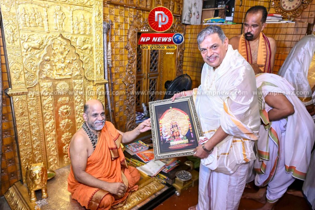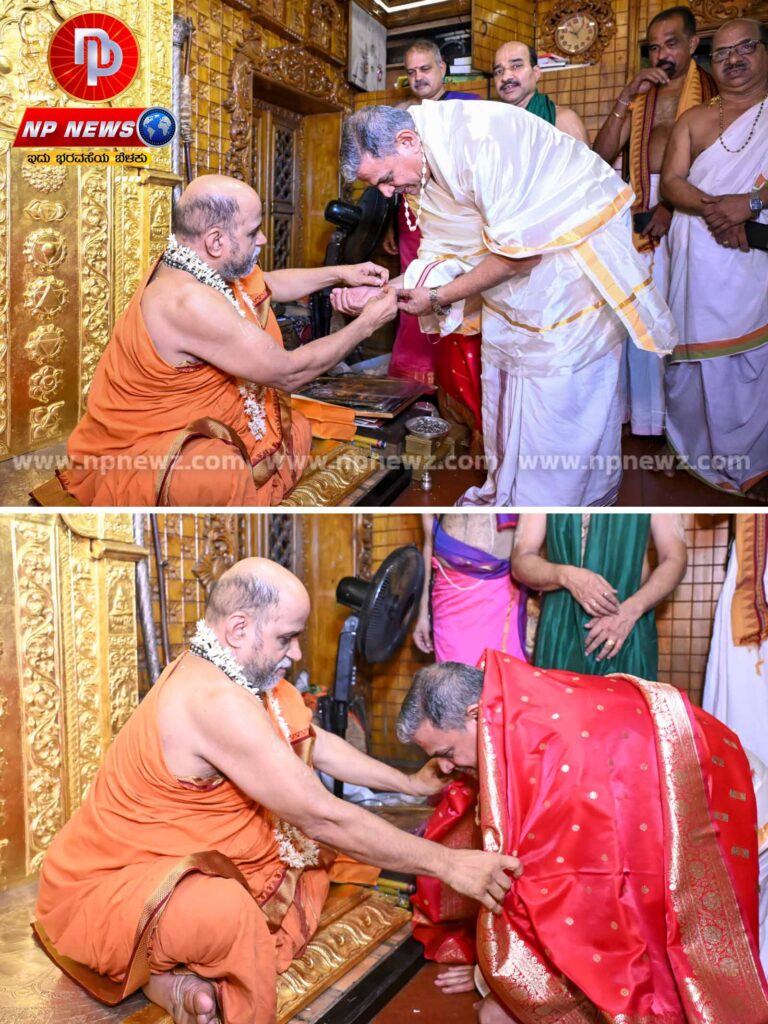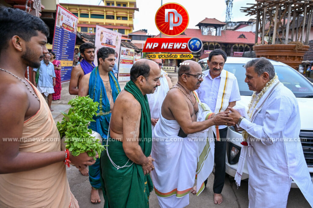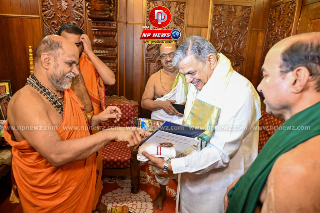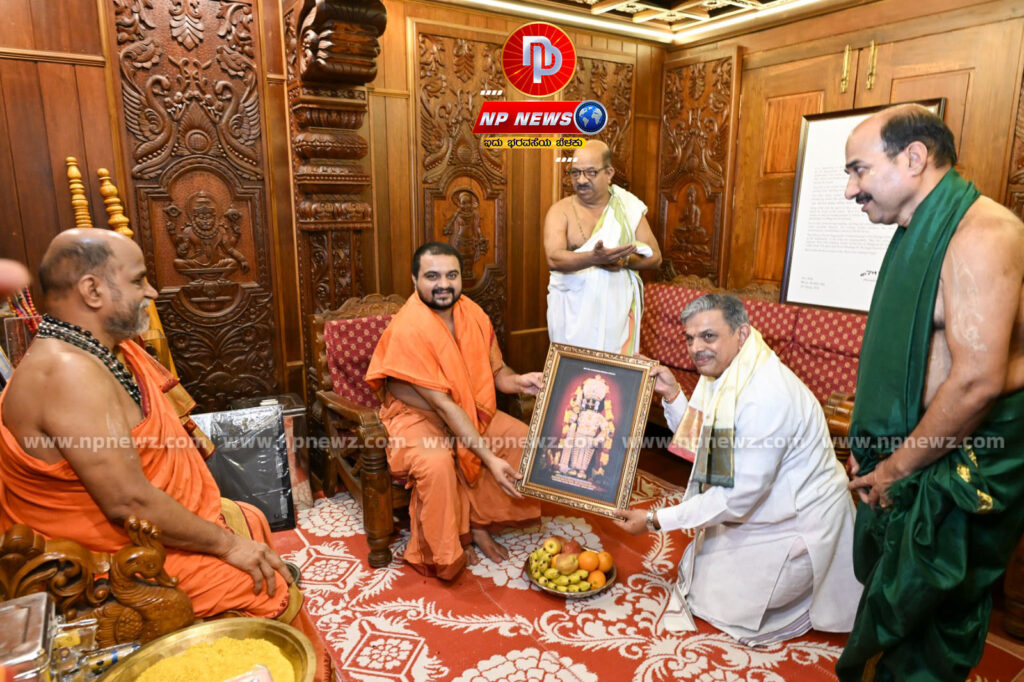 ಉಡುಪಿಯ ಶ್ರೀ ಕೃಷ್ಣ ಮಠಕ್ಕೆ ಬುಧವಾರ ಭೇಟಿ ನೀಡಿದ್ದ ಆರ್ ಎಸ್ ಎಸ್ ನ ಪ್ರಧಾನ ಕಾರ್ಯದರ್ಶಿ ದತ್ತಾತ್ರೇಯ ಹೊಸಬಾಳೆ ಅವರಿಗೆ ಶ್ರೀಕೃಷ್ಣ-ಮುಖ್ಯಪ್ರಾಣ ದೇವರ ಪ್ರಸಾದ ಹಾಗೂ ಮಂತ್ರಾಕ್ಷತೆ ನೀಡಿ ಶ್ರೀಗಳು ಆಶೀರ್ವಚನ ನೀಡಿದರು.
